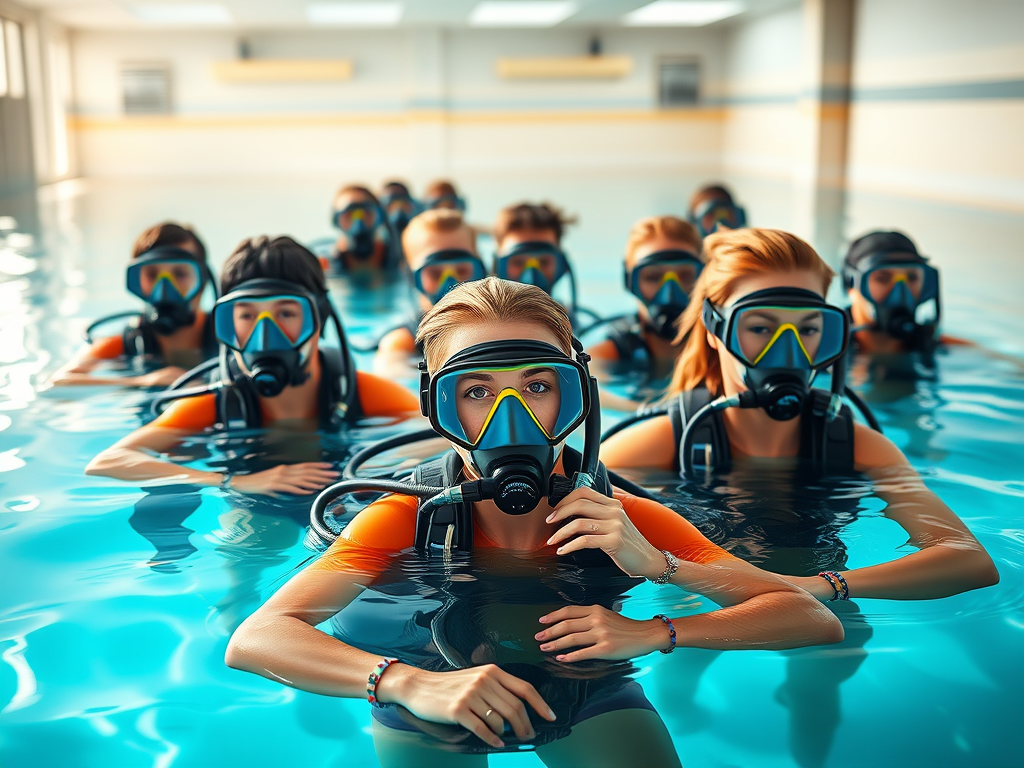 Nach der bestandenen Theorieprüfung geht es endlich ins Hallenbad. Hier, in einer sicheren und kontrollierten Umgebung, wendest du das theoretisch Gelernte erstmals praktisch an. Du lernst die Grundfertigkeiten wie das Tarieren, das Maske ausblasen und das Bergen eines Partners. Das Hallenbad ist der ideale Ort, um Vertrauen in dich selbst und deine Ausrüstung zu entwickeln.